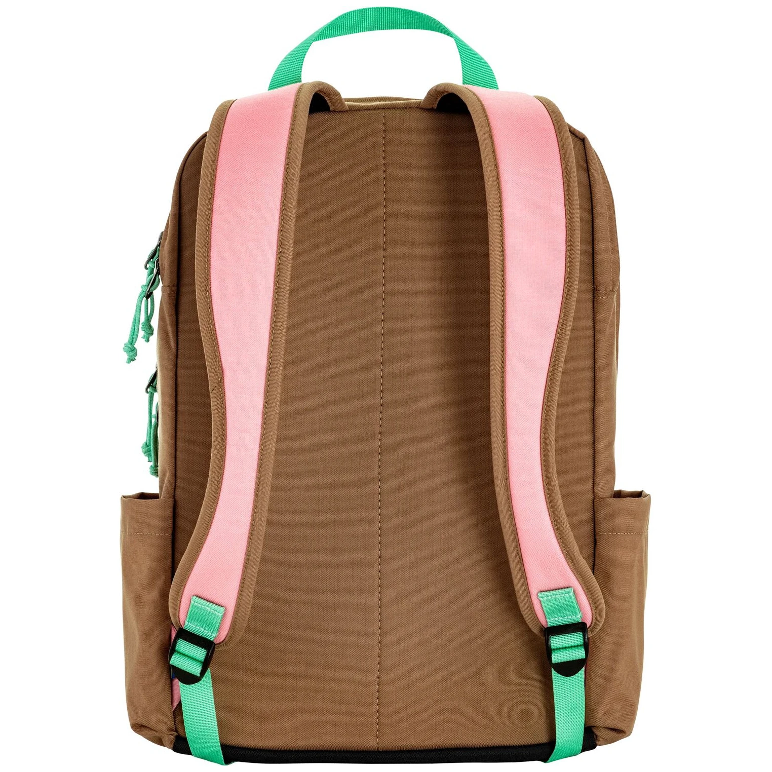 En los laterales hay bolsillos abiertos, por ejemplo, para una botella, y en la parte delantera un bolsillo con cremallera para cosas que necesites tener a mano. En la parte delantera no falta una correa para acoplar pequeños equipos. Gracias al poliamida reciclado, la mochila es resistente y duradera, pero sigue siendo lo suficientemente ligera para llevarla cómodamente todo el día.