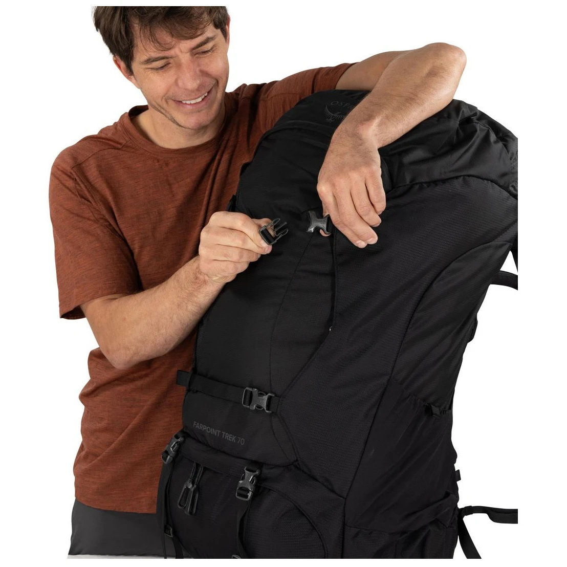 Osprey Farpoint Trek 75 es la opción ideal para viajes más largos a la naturaleza, donde necesitas llevar equipo completo para varios días.