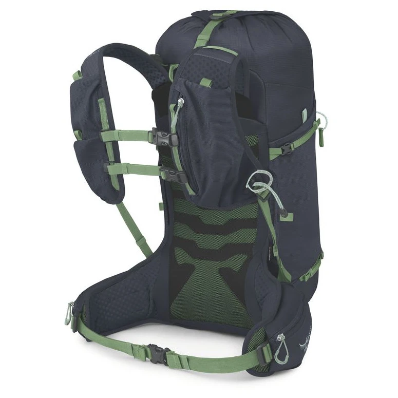 Panel posterior de espuma esculpida moldeada por inyección AirScape™ crea un agarre transpirable en el cuerpo. El arnés flexible BioStretch y el cinturón lumbar de envoltura continua permiten un movimiento dinámico. Está diseñado para un uso multideportivo, se puede llevar en skialps, senderismo, ciclismo o esquí.
