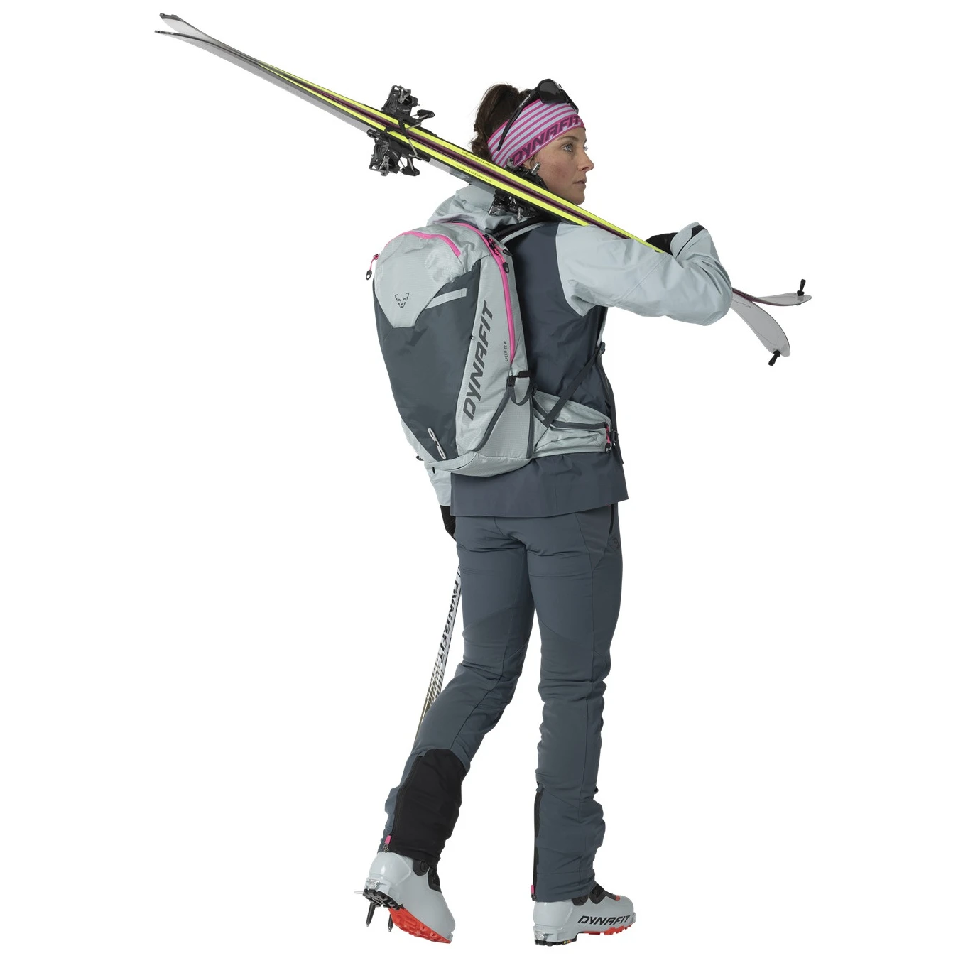 La mochila de mujer Speed 22 Backpack W de Dynafit tiene una organización bien pensada con un compartimento principal grande y un compartimento separado para crampones para proteger tu equipo, mantener todo ordenado y garantizar un acceso rápido.El práctico soporte para esquíes permite una fijación rápida de los esquíes al empacar las botas. El sistema de transporte anatómico y transpirable, con una longitud de espalda adaptada a las necesidades de las mujeres, ofrece un alto nivel de comodidad. El material resistente a la abrasión garantiza la robustez necesaria en contacto con las rocas.
