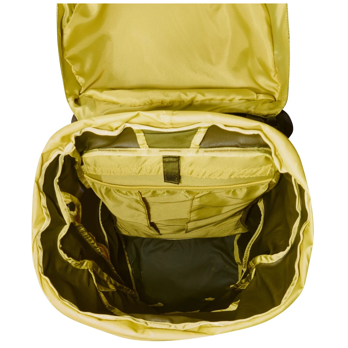 El cómodo acceso al espacioso compartimento principal está garantizado por una cremallera bidireccional en forma de U en toda la parte superior. En la parte superior hay una tapa desmontable con un bolsillo y un clip para llaves. En el interior hay un bolsillo para bolsa de hidratación. En la parte delantera de la mochila hay un bolsillo con hebilla S/R, que permite ceñir el panel frontal. Dos bolsillos adicionales están situados en el cinturón. Por supuesto, hay bucles para fijar bastones de trekking y un piolet y correas de compresión.