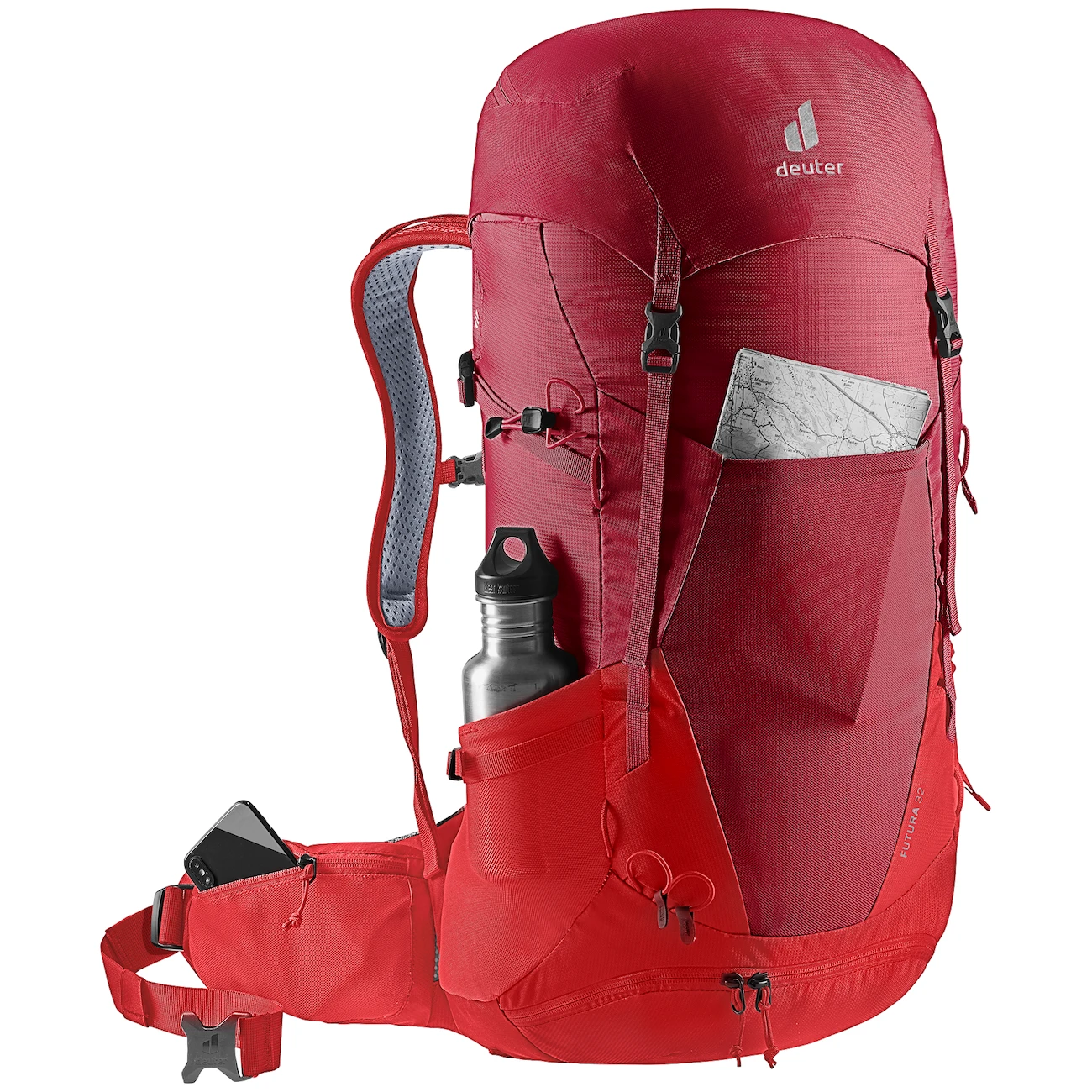 LaMochila turística Futura 32 del fabricante Deuter con un volumen de 32 litros es ideal para todas las actividades deportivas y de ocio. La mochila tiene un refuerzo metálico en la espalda para distribuir el peso y, gracias a los tirantes acolchados más estrechos, proporciona ligereza y comodidad en los desplazamientos. El nuevo sistema de espalda Aircomfort es extremadamente cómodo y, gracias al tejido de malla, garantiza el máximo flujo de aire para aumentar el rendimiento y reducir la sudoración hasta en un 25%.