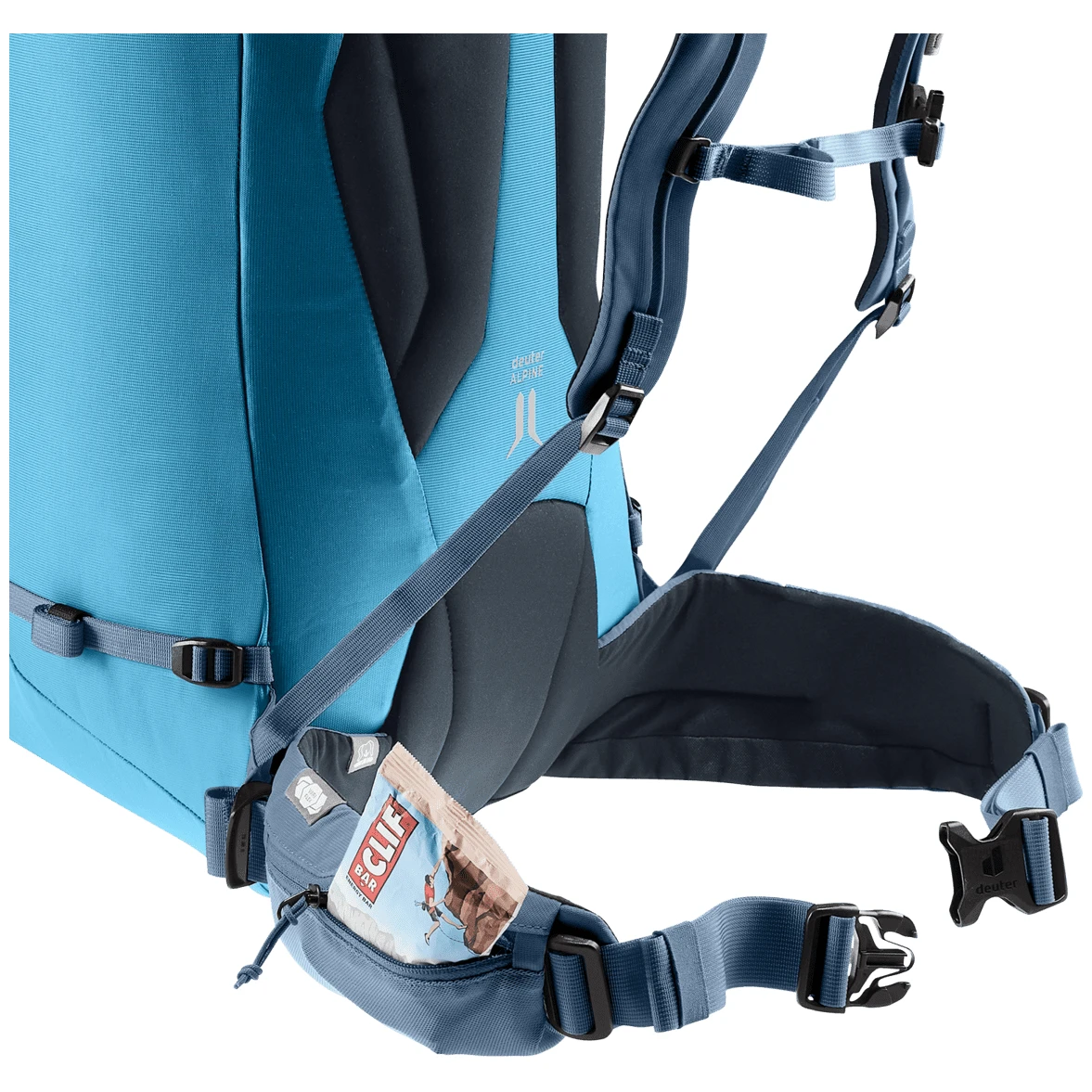 Ligera mochila de escalada Deuter Guide 44+ 8 Sin PFC ofrece el equilibrio perfecto entre ligereza, comodidad y funcionalidad. Sistema de espalda bien ventilada y ajuste ceñido. Esto mantiene la mochila cerca de tu centro de gravedad y cerca de tu espalda. Cinturón ergonómico y desmontable, materiales duraderos y sistemas de fijación mejorados. Todo ello con el añadido de una correa de cuerda plegable. La abertura frontal con cremallera en forma de J también proporciona un acceso rápido al compartimento principal.