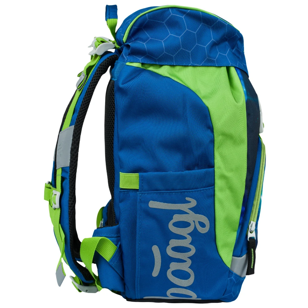La mochila está fabricada con poliéster 100% reciclado e impermeable, lo que garantiza una alta durabilidad y una larga vida útil. Durante los meses de otoño e invierno, sin duda apreciará la serie de elementos reflectantes integrados. Estos garantizarán a los escolares una mayor visibilidad y seguridad máxima incluso en condiciones climáticas adversas.