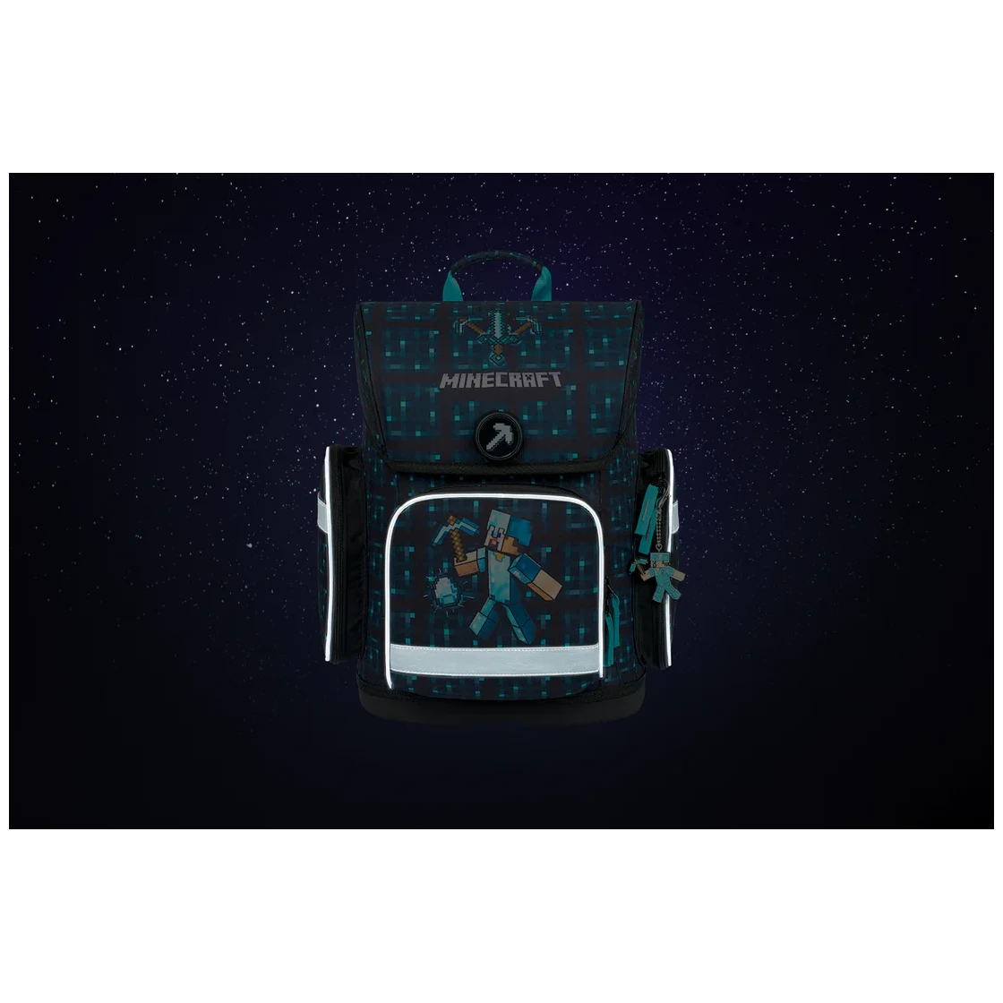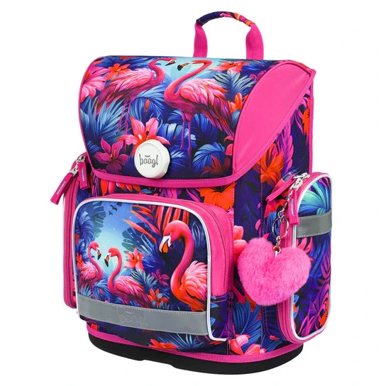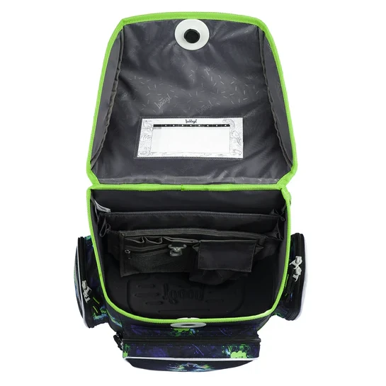 La mochila está hecha de un material resistente al agua y duradero. La construcción reforzada y el fondo rígido mantienen una forma estable en cualquier situación. En el exterior hay un bolsillo delantero aislado con cremallera y dos bolsillos laterales con cremallera, ideales para una botella de agua. El compartimento principal es accesible mediante una tapa con cierre magnético Fidlock, que facilita su manejo. Se abre girando la rueda y se cierra automáticamente. Dentro del compartimento hay un organizador que ayuda a distribuir mejor el peso de los libros de texto y un bolsillo transparente para el horario escolar. Los elementos reflectantes colocados en todos los lados aumentan la visibilidad del niño en condiciones de poca luz.
