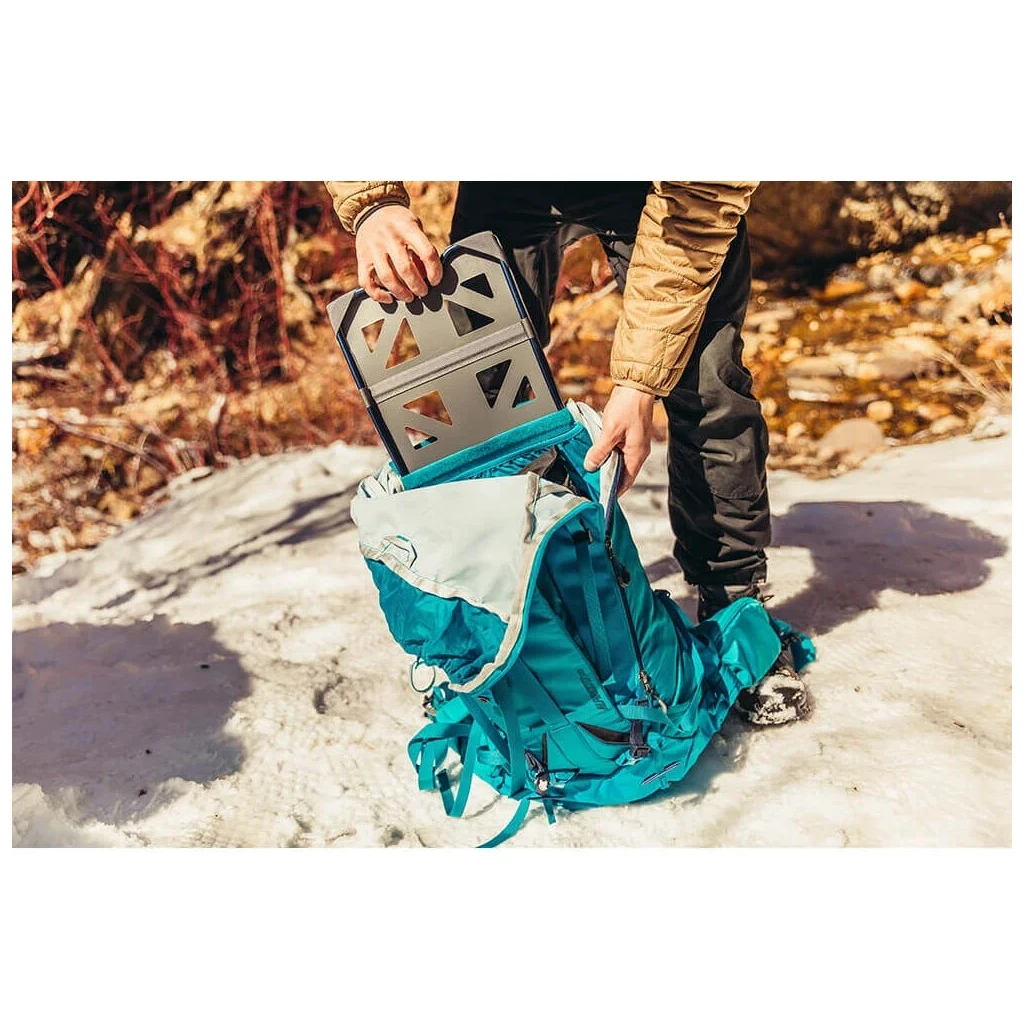 El sistema de respaldo de malla crea un espacio entre tu espalda y la mochila. El aire puede circular libremente, lo que mejora la ventilación de la espalda y acelera la evaporación del sudor. La desventaja es una ligera reducción del volumen interior y un centro de gravedad menos favorable.