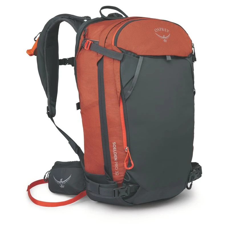La mochila de esquí de travesía Soelden Pro Avy 32 del fabricante Osprey es una solución de primera clase para todos los esquiadores y alpinistas exigentes. Este modelo combina el sistema electrónico de avalanchas Alpride E2 con una distribución bien pensada de bolsillos y elementos de sujeción para un movimiento eficiente y seguro en el terreno. El material NanoFly™ con malla de refuerzo UHMWPE garantiza una resistencia extrema a la abrasión manteniendo un peso bajo, además, todos los tejidos utilizados cuentan con la certificación bluesign®, libres de PFC y fabricados con nylon reciclado del océano.