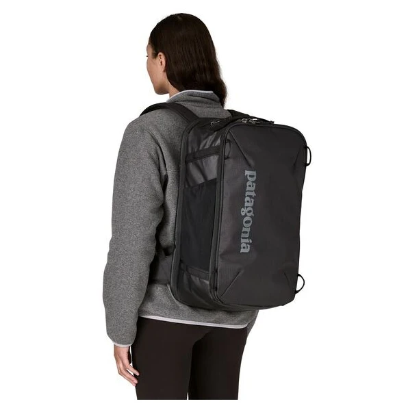 La Black Hole Mini MLC de Patagonia es una mochilade viaje genial que cumple con los requisitos para el equipaje de mano. La mochila tiene un diseño único que permite llevarla como bandolera o maletín/bolsa de mano. Conviértela en una bolsa guardando las correas acolchadas para los hombros en el bolsillo situado detrás del panel trasero. La correa para el hombro se obtiene cambiando del cinturón de cintura. Si viaja con una maleta, apreciará el asa integrada en el centro del panel trasero transpirable, que permite deslizar la mochila sobre el asa de la maleta. Además del panel dorsal acolchado y las correas para los hombros, un cinturón acolchado o una correa para el pecho también contribuyen al máximo confort durante su uso.