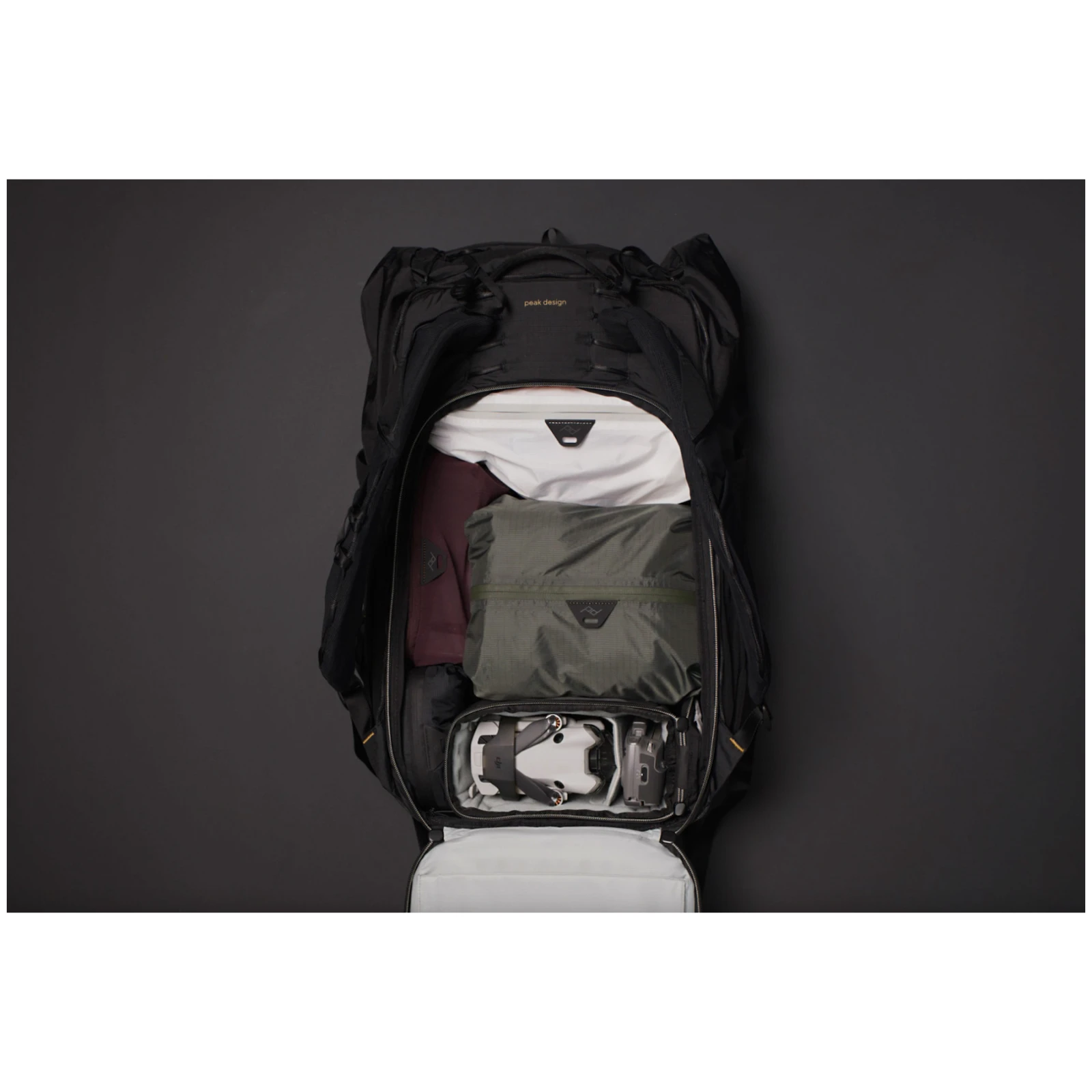 - espacio interior modular compatible con Peak Design Camera Cubes y Packing Tools