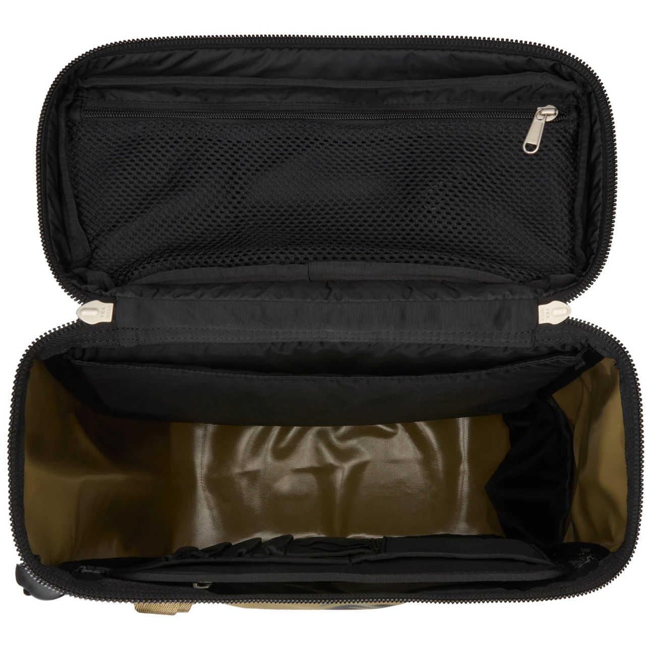 Está fabricado con un material Base Camp extremadamente duradero y rígido. Tiene un panel trasero acolchado y tirantes, además de un cinturón pectoral para que resulte cómoda de llevar. La mochila se llena por la parte superior a través de la gran tapa, por lo que se tiene una buena visión del contenido. Ábrelo con la cremallera con grandes trabillas. En el interior hay un bolsillo trasero oculto para smartphone, un bolsillo con cremallera para tableta, un portabotellas interno, una funda acolchada para portátil de hasta 15", un bolsillo interno de malla con cremallera y clip para llaves y otro bolsillo interno. En el exterior, hay un bolsillo con cremallera y asas hechas con correas a las que se pueden atar otras cosas. Las correas de compresión laterales ajustan fácilmente el volumen total.