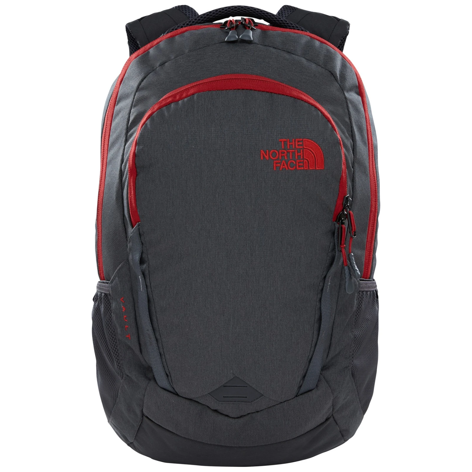 La mochila Vault Urban de The North Face cuenta con un bolsillo frontal profundo de fácil acceso, bolsillos laterales de malla para botellas de agua, un sistema trasero de malla de aire de calidad, correas acolchadas para los hombros y elementos reflectantes. . Tiene un compartimento principal con un bolsillo acolchado para un portátil de 15", otro compartimento con un organizador y un silbato.