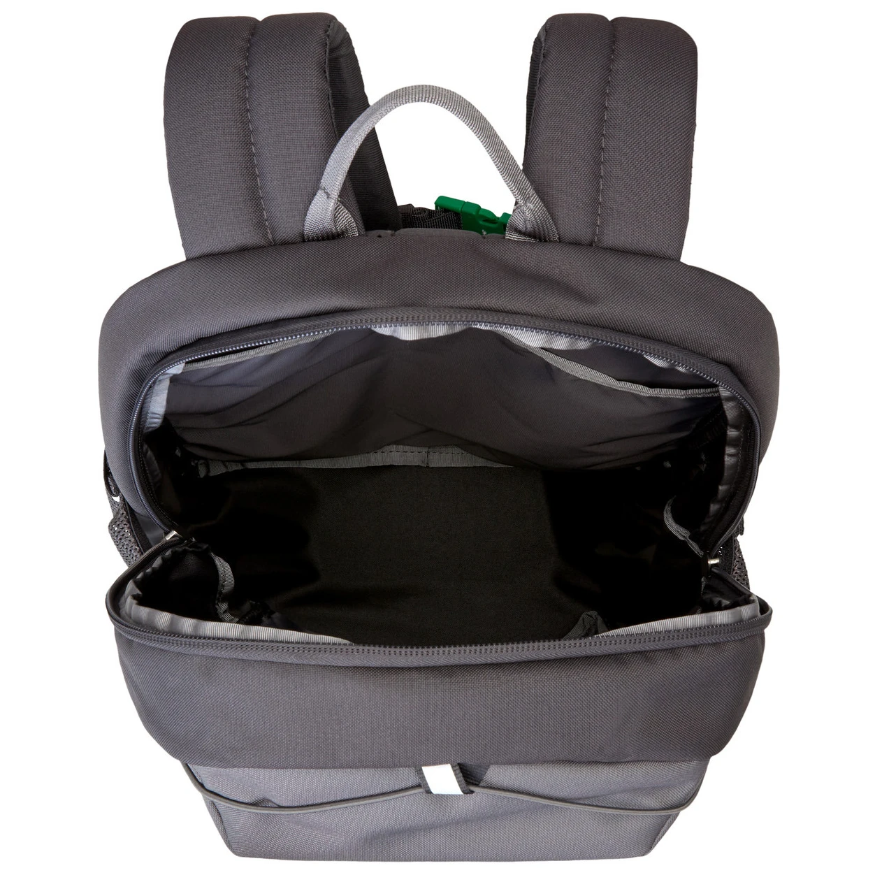 El generoso espacio de almacenamiento de 24,6 litros consta de un gran compartimento principal con un bolsillo para el portátil y 2 bolsillos laterales de malla para botellas de agua. Otras características incluyen una banda elástica en la parte delantera de la mochila bajo la que puedes guardar tu chaqueta, una correa para el pecho, una etiqueta de datos interna o elementos reflectantes de 360º para una máxima seguridad