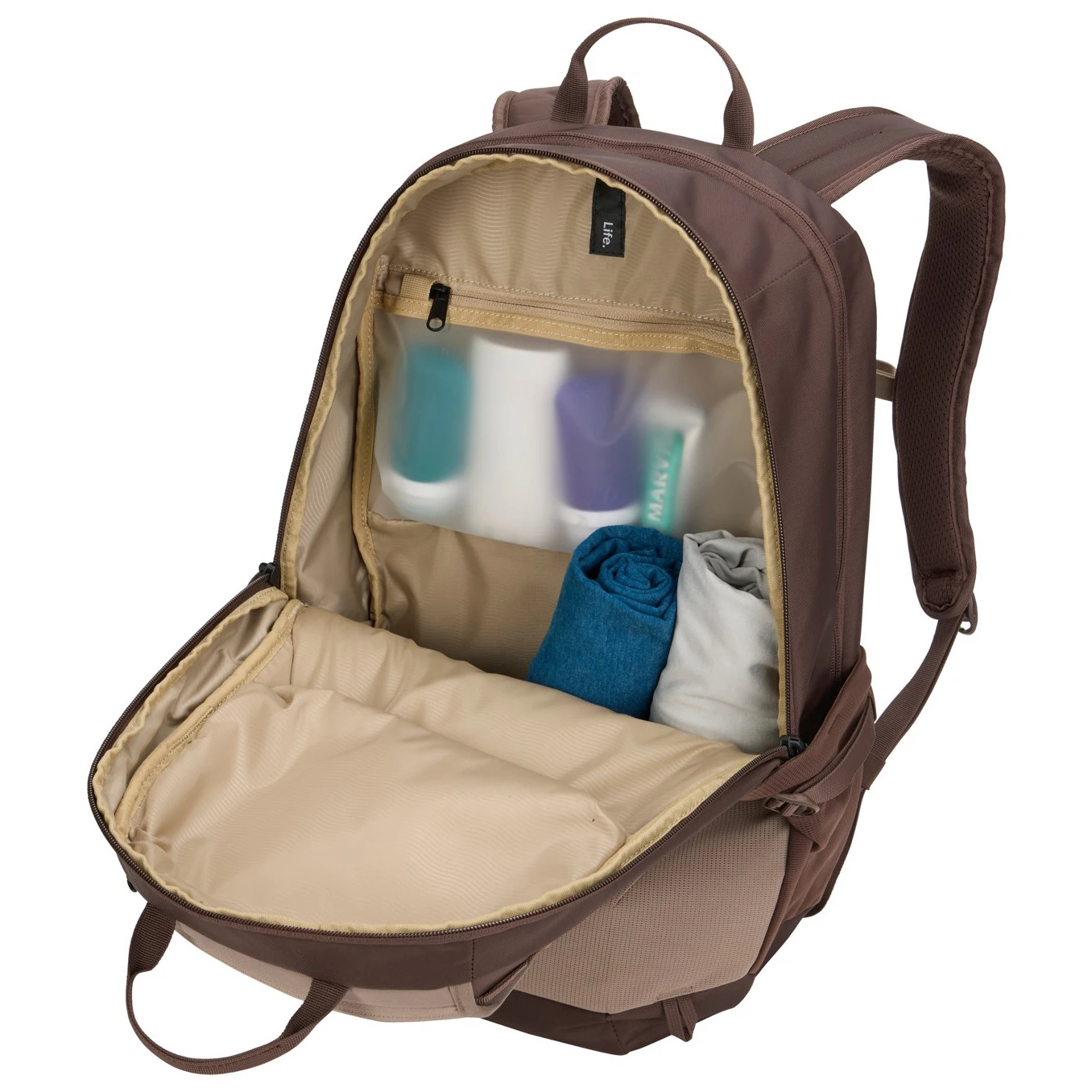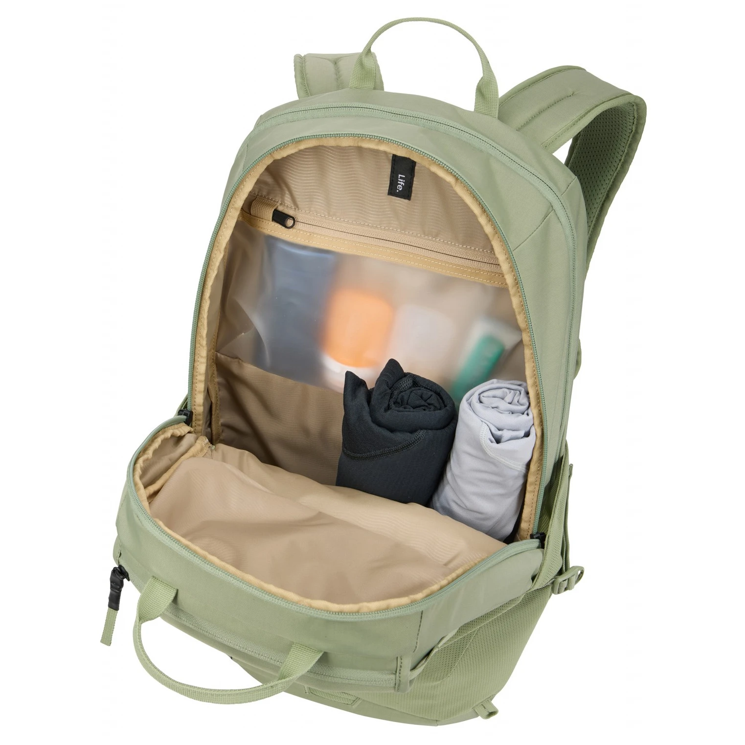 La mochila todoterreno EnRoute 26L de la marca Thule está inspirada en las actividades al aire libre. Tiene varios compartimentos de almacenamiento, que te ayudarán a mantener tus pertenencias ordenadas incluso en tus viajes. El panel organizador permite un acceso rápido a objetos pequeños, material de escritura o llaves. El segundo compartimento puede utilizarse para guardar una muda de ropa, accesorios u otros objetos personales. Tiene un bolsillo con cremallera de TPU que es impermeable, protegiendo así su contenido y tu privacidad gracias a su opacidad.