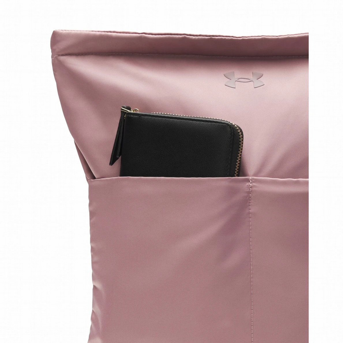 Mochila Studio Lite para mujer de la marca Under Armour con un amplio compartimento principal con cierre de cremallera y organización interna y una funda acolchada para tu teléfono y portátil o tableta (admite hasta una MacBook Pro® de 16"). La cremallera está equipada con una banda elásticaque se puede utilizar, por ejemplo, en el pelo.