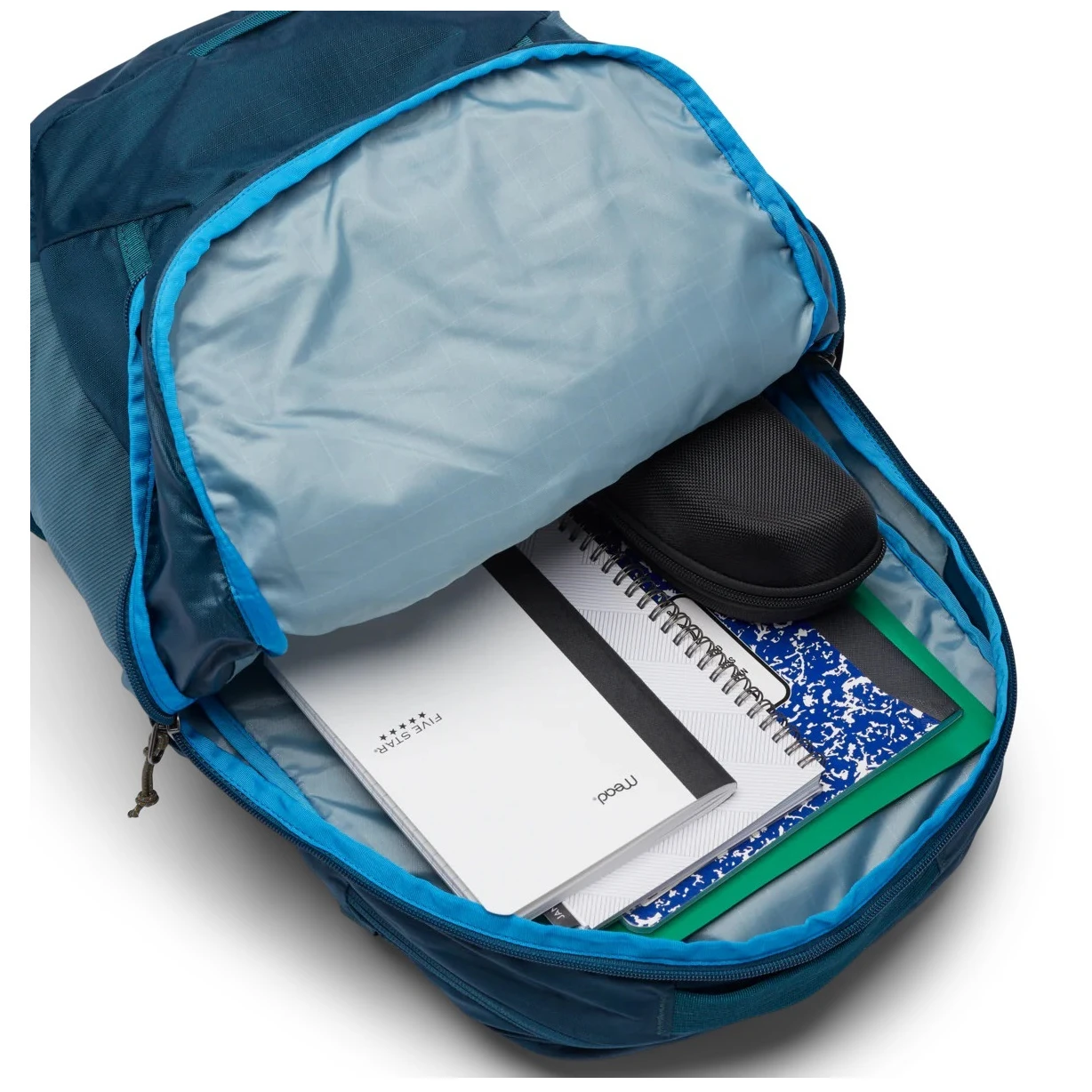La mochila urbana Mente 32L Daypack de la marca Cotopaxi es compacta, pero aun así ofrece un volumen de 32 litros y suficiente espacio de almacenamiento para una amplia gama de actividades. Para la cubierta se utiliza nailon ripstop reciclado con un tratamiento DWR repelente al agua, y el forro es de poliéster ripstop reciclado.