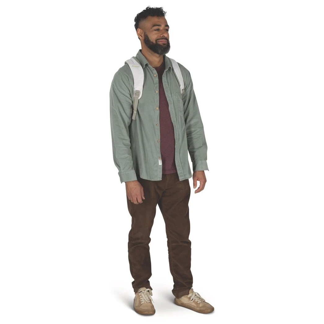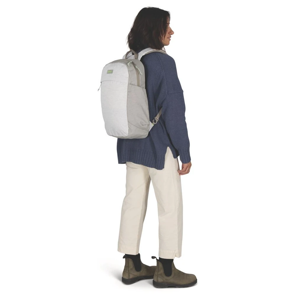 La mochila urbana Arcane Earth Large Day de Osprey representa una combinación de diseño moderno, funcionalidad práctica y producción sostenible. Está fabricada con hilo certificado ReComp™, que contiene un 100 % de fibras recicladas, de las cuales el 30 % son directamente residuos de producción. Este proceso no solo reduce la cantidad de residuos en los vertederos, sino que también contribuye al ahorro de agua y energía gracias a la mínima coloración.