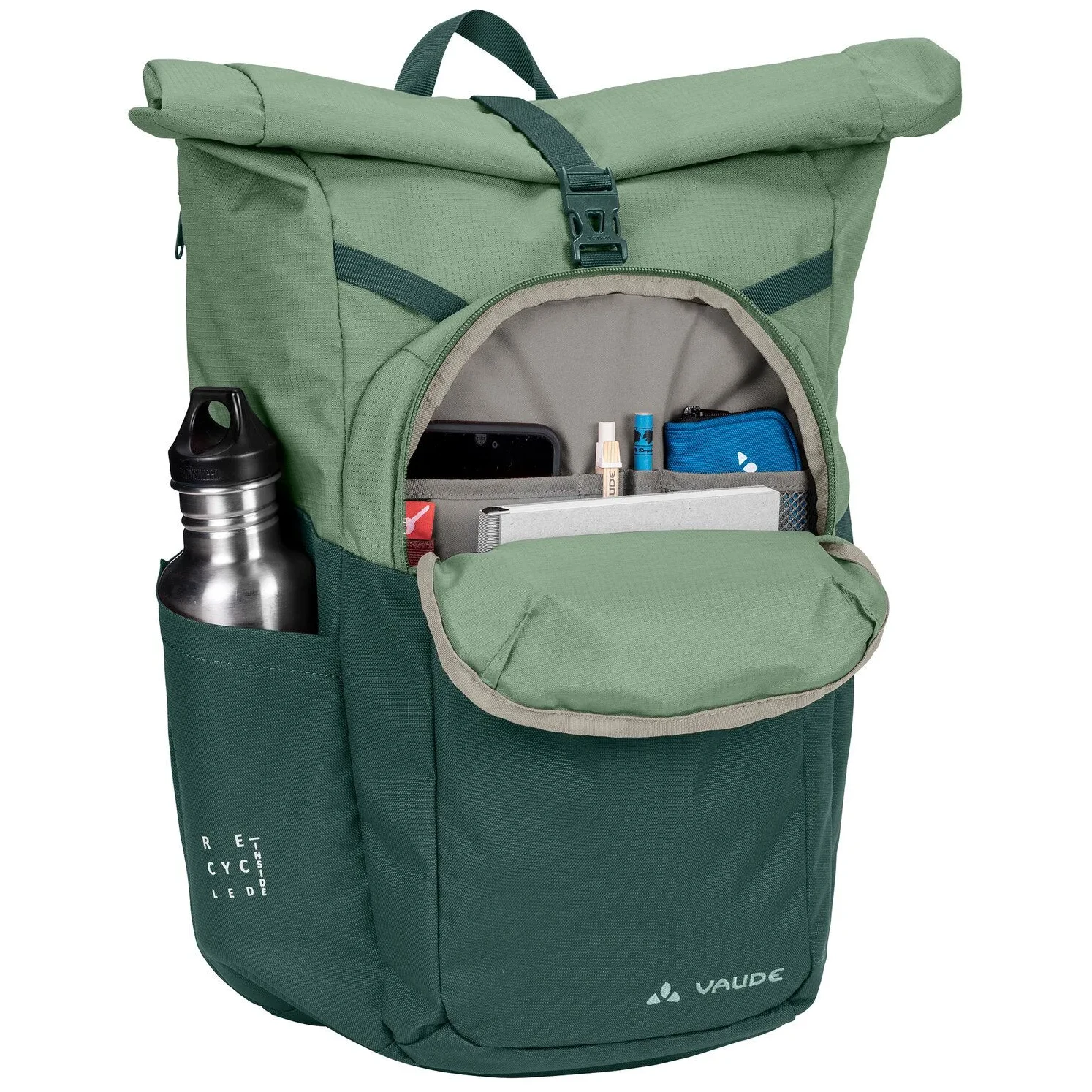 - bolsa principal con cierre de tapa enrollable y organizador interior