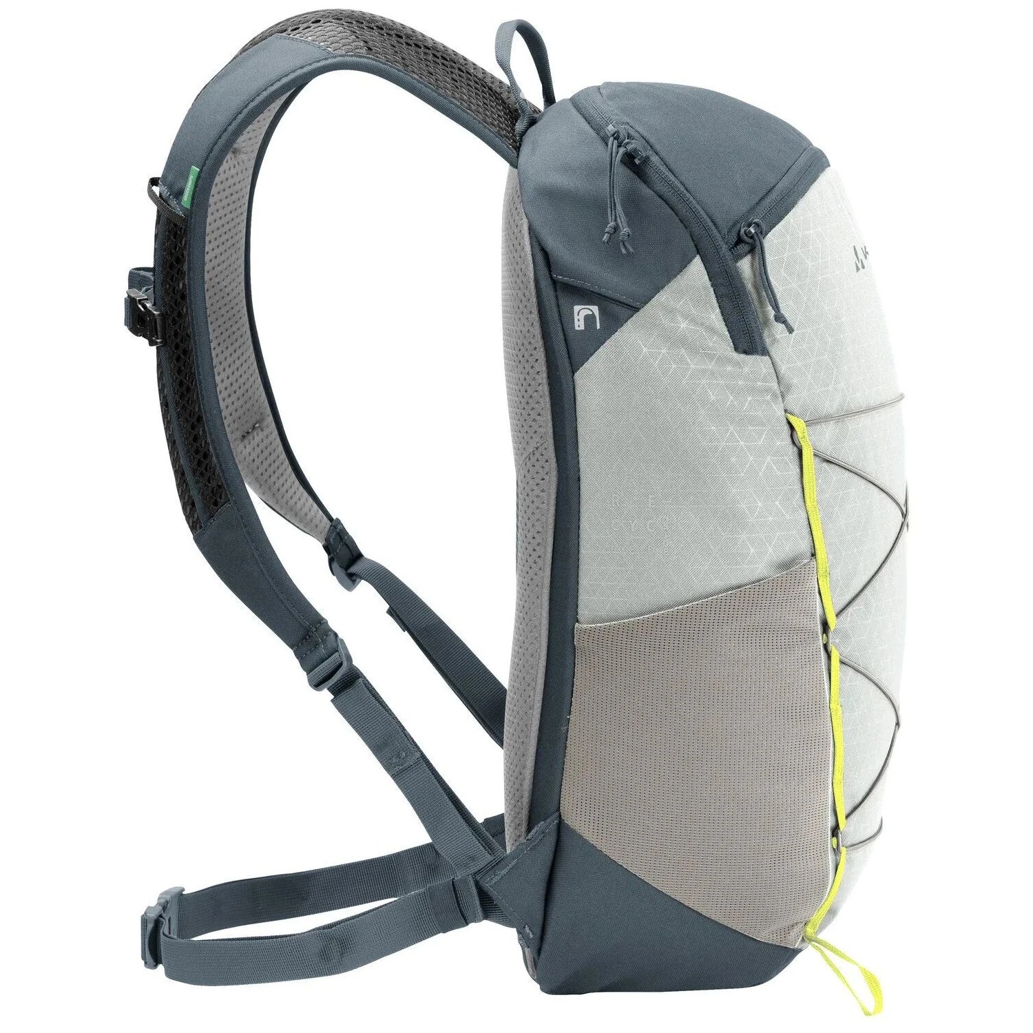 Está fabricado con poliéster 100 % reciclado resistente y cuenta con un acabado Eco Finish sin PFC que repele el agua y la suciedad. Las certificaciones VAUDE Green Shape y bluesign® garantizan una producción ecológica y el respeto por la naturaleza.