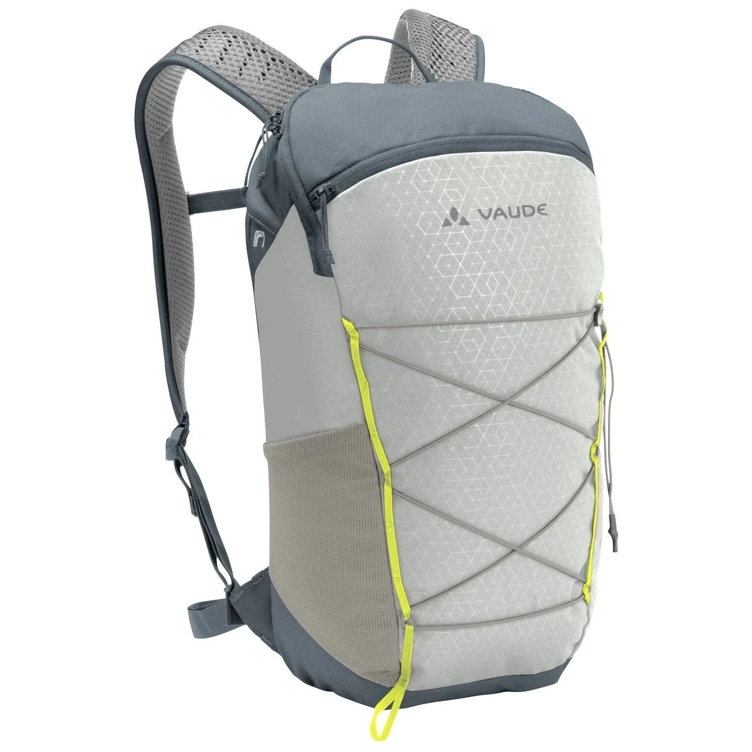 Con un volumen de 14 litros, ofrece espacio suficiente para un impermeable, un tentempié, una botella de agua y objetos pequeños como un teléfono o una cartera. Los prácticos bolsillos (compartimento principal con cremallera, bolsillo lateral con cremallera, bolsillo de malla elástica y bolsillo frontal con cremallera) facilitan la organización. La cuerda elástica frontal sirve para sujetar una chaqueta, un casco o bastones de senderismo. El cinturón lumbar se puede quitar fácilmente si no es necesario.