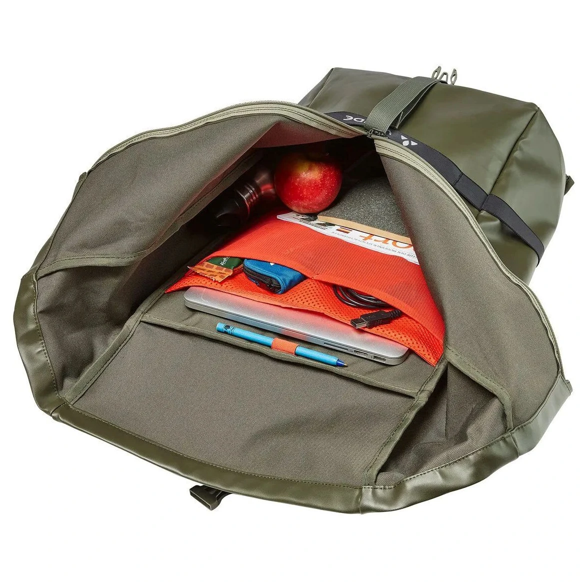 La mochila Mineo Backpack 23 de la marca Vaude está diseñada para la vida urbana y los desplazamientos diarios. Con un volumen de 23 litros, ofrece espacio suficiente para todos los elementos esenciales y combina funcionalidad con un diseño moderno y minimalista. Está fabricada con poliéster reciclado de botellas de PET con un tratamiento hidrófugo Eco Finish sin PFC. El material es resistente, robusto y, a la vez, respetuoso con el medio ambiente. Gracias a la certificación VAUDE Green Shape y a la pertenencia de la marca a Fair Wear Foundation, puedes estar seguro de que la producción es justa y sostenible.