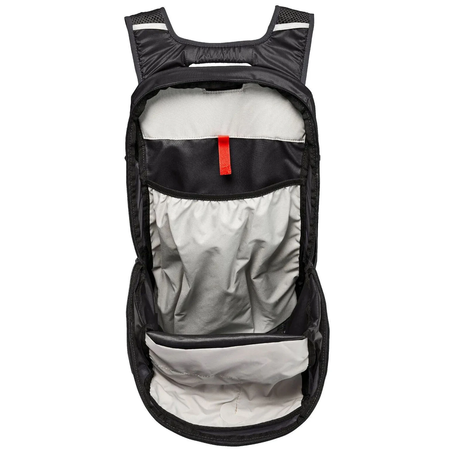 - Apertura para sistema de hidratación, elementos reflectantes, luz de seguridad adicional