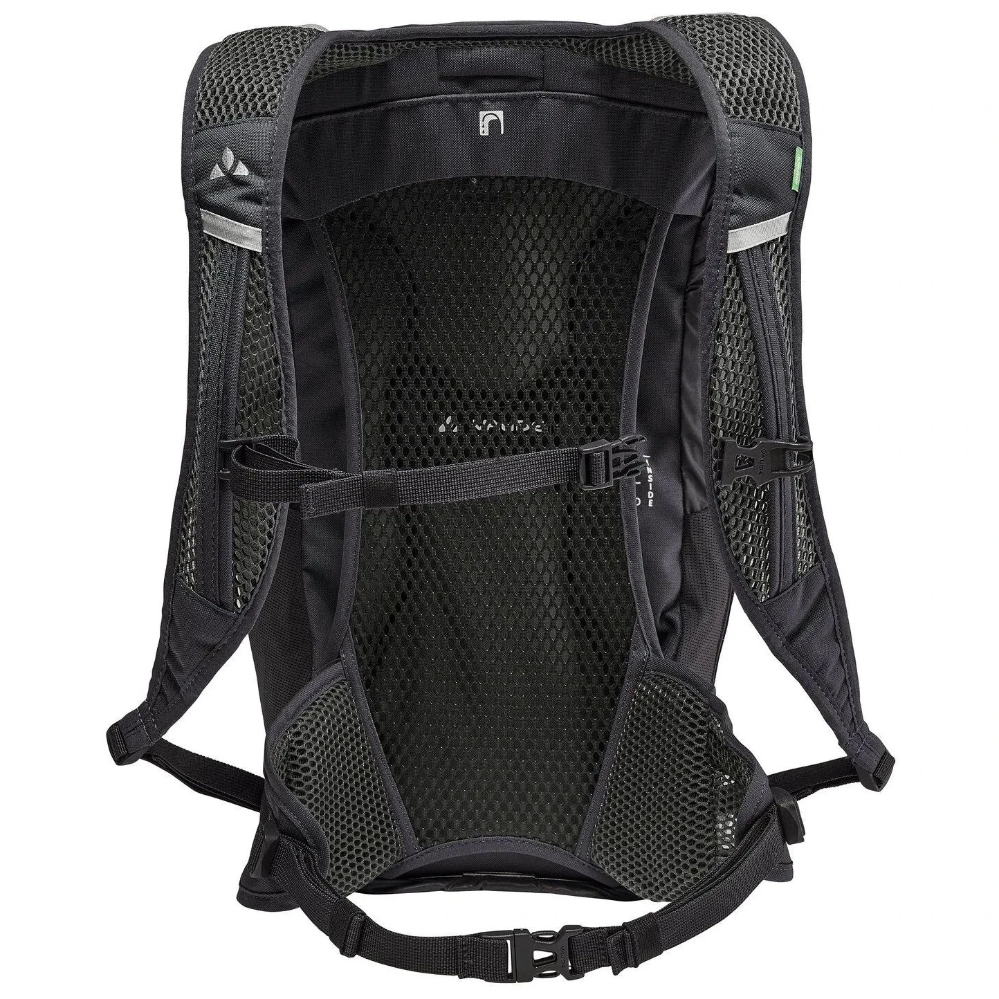 La mochila Uphill Air 18 de Vaude con una capacidad de 18 litros es ideal para excursiones de un día, senderismo o actividades deportivas. Su principal ventaja es el innovador sistema de respaldo Aeroflex: una construcción de malla con un marco de resorte que evita que la mochila se apoye directamente en la espalda, asegurando así la máxima circulación de aire. Las ergonómicas correas para los hombros ErgoShape se ajustan perfectamente y brindan libertad de movimiento, mientras que el cinturón acolchado para la cadera contribuye a la comodidad general.