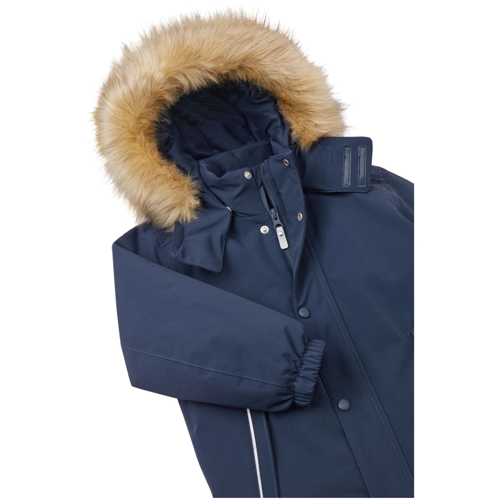 La popularidad del mono Stavanger Reima es la suma de muchas características. Está fabricado con un material muy duradero, impermeable y transpirable. La cintura ajustable asegura un ajuste perfecto, el dobladillo de la capucha de piel sintética mantiene la cara caliente y las perneras mantienen las piernas en su sitio. Con este mono de invierno para niños, cualquier tiempo es ideal.