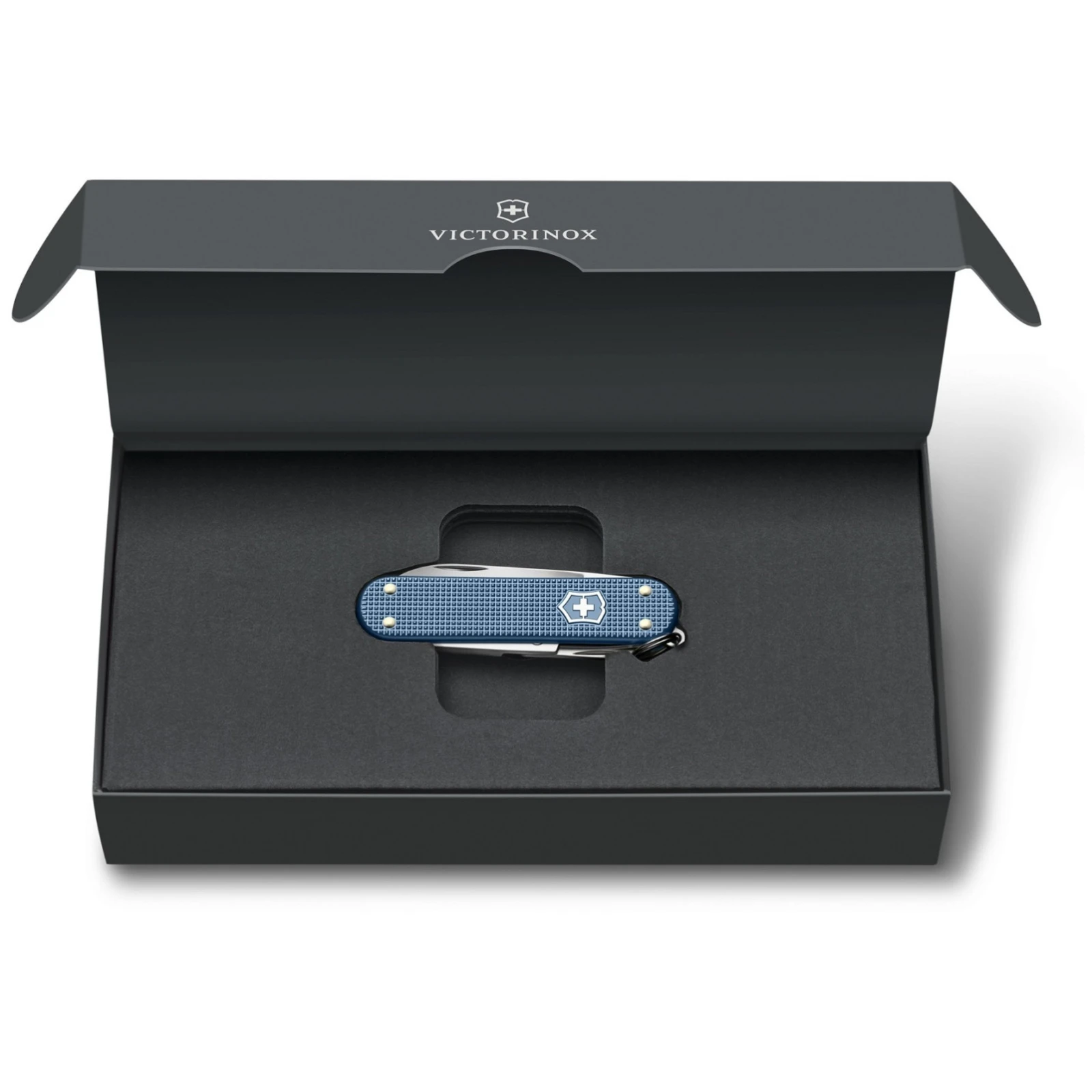 El Victorinox Classic Alox LE 2026 es una pequeña navaja de bolsillo con 5 funciones. Este es el tamaño más pequeño de los cuchillos de la edición Alox. Los escudos son de aluminio extruido y están recubiertos con una capa anticorrosión.