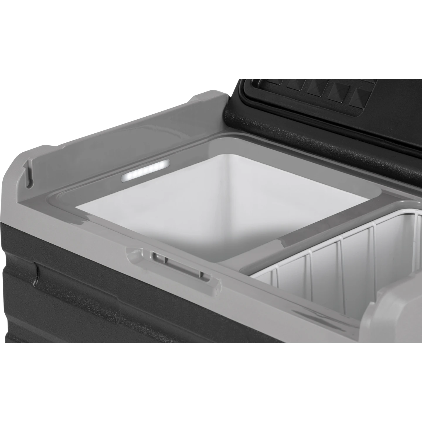 El potente frigorífico/congelador de dos zonas Polarys Freeze de 45 l de Brunner es la elección perfecta para viajar, ya sea de acampada, de picnic, para relajarse en la playa o para largas distancias en coche. viajes. El Polarys está equipado con dos cámaras separadas en las que, gracias a la tecnología Dual Zone, se puede ajustar el rango de temperatura según las necesidades. Con esta función, puede transportar alimentos congelados mientras enfría su bebida favorita. La nevera puede alimentarse mediante 12/24 V CC del encendedor del coche o 100-240 V CA de la red eléctrica. Como alternativa, se puede utilizar una pila extraíble (no incluida) para mantener el frío entre 4 y 24 horas.