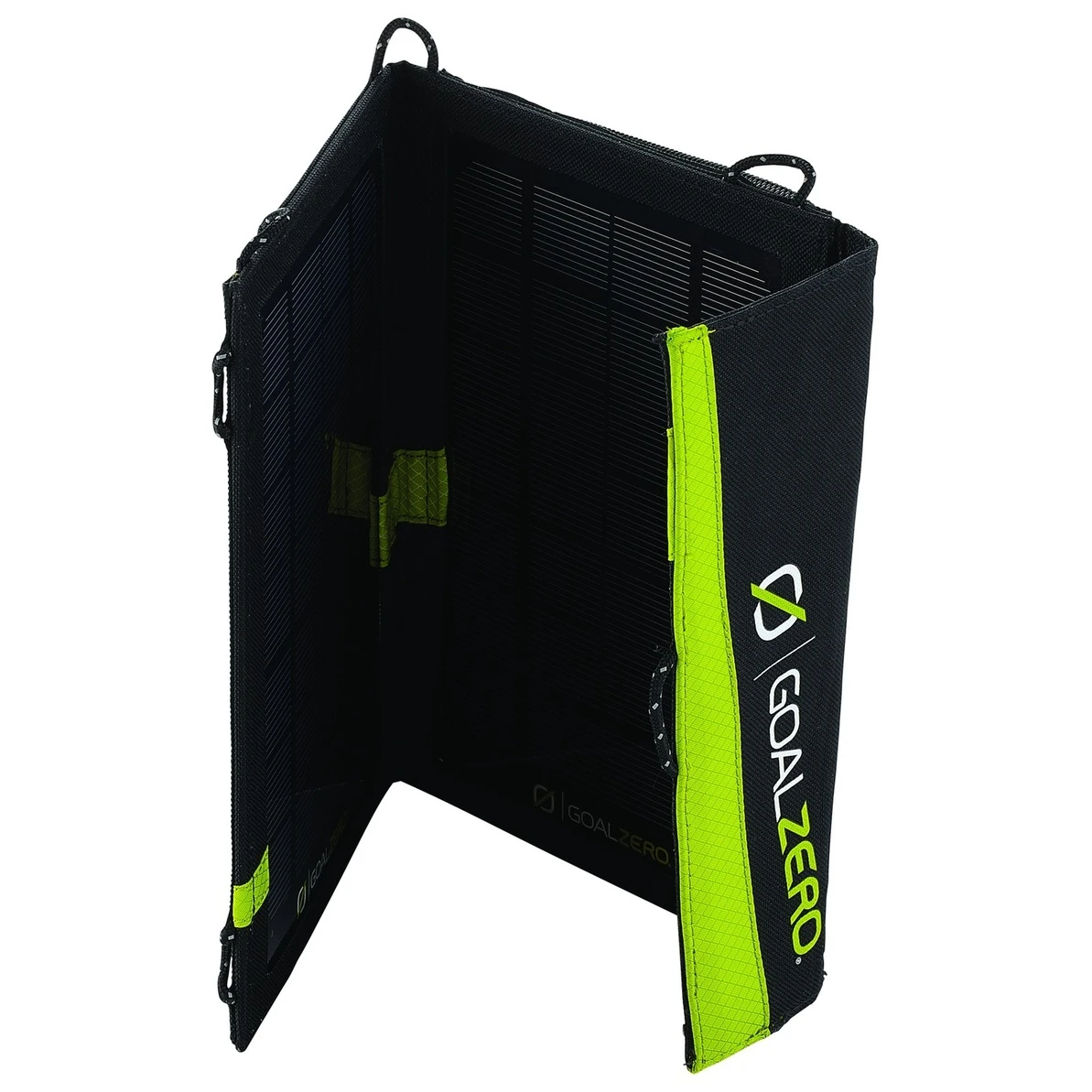 Un panel solar muy potente y ultraligero de Goal Zero apto para viajar, donde no dependerás de otras fuentes de electricidad. Sólo tienes que dejarlo enganchado a tu mochila durante el viaje y utilizarlo para cargar cualquier dispositivo a través de una salida USB o de 12 V. Recargará tu smartphone en una o dos horas en condiciones favorables. Se ha fabricado pensando en un peso mínimo y un buen almacenamiento. Cuando está plegada, ocupa unas dimensiones mínimas y encuentra cómodamente su sitio en la mochila de cualquier viajero.