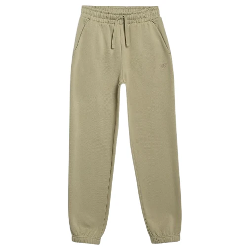 Los pantalones de chándal para niños 4F Trousers Cas M1245, confeccionados con un tejido de felpa suave y cepillado en el interior, proporcionan calor y comodidad para el uso diario. Tienen una cintura elástica con cordón, dos bolsillos laterales y bajos con ribete.
