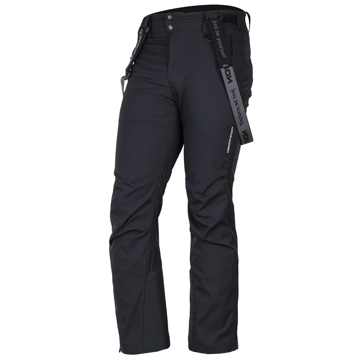Northfinder Balasz son unos pantalones de esquí para hombre diseñados para el esquí alpino, que combinan una protección fiable contra el mal tiempo, alta funcionalidad y comodidad. El material de doble capa con parámetros de columna de agua de 10 000 mm H₂O y transpirabilidad de 10 000 g/m²/24 h resiste el agua y el viento sin limitar la circulación del aire. El tratamiento superficial sin PFC es ecológico y, al mismo tiempo, eficaz para repeler la humedad. Las costuras críticas selladas garantizan que los pantalones resistirán incluso en condiciones difíciles en las pistas.