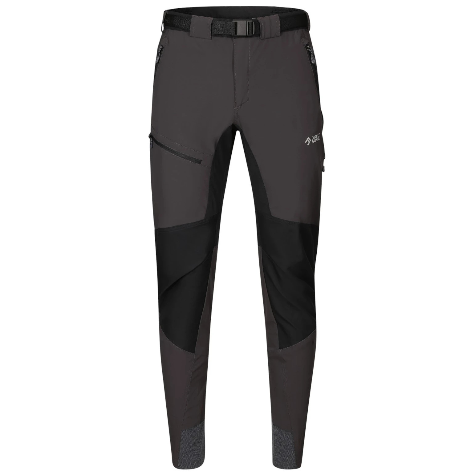 Los pantalones tienenuna cómoda cintura ligeramente elástica, parcialmente con goma, ajustable con un cinturón y hebilla. Disponen de dos bolsillos frontales con cremallera, uno trasero y uno lateral para guardar objetos pequeños de forma segura. Un elemento práctico esla posibilidad de abrir y ventilar el lateral del pantalón, que ayuda a regular la temperatura durante un esfuerzo mayor.