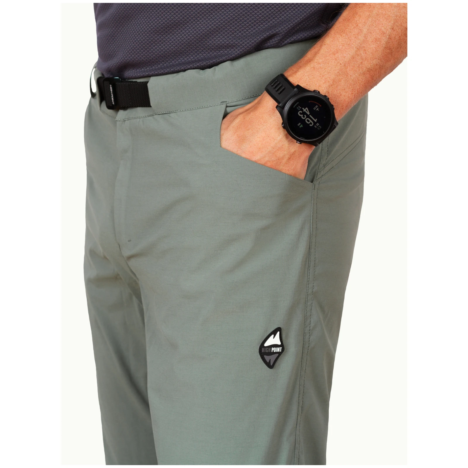 Pantalones de hombre Los pantalones Dash 6.0 de la marca High Point son universales y modernos. Así que puedes llevarlos de excursión, en actividades urbanas o en cualquier otro lugar y siempre estarás envuelto en un elegante confort. El pantalón tiene un aspecto muy limpio gracias al diseño de los bolsillos y la bragueta. Están plastificados, por lo que la impresión general no se ve estropeada por costuras innecesarias. El cinturón del pantalón está integrado, por lo que permanecerá perfectamente en su sitio. Se completa con una hebilla especial de fácil uso High Point.