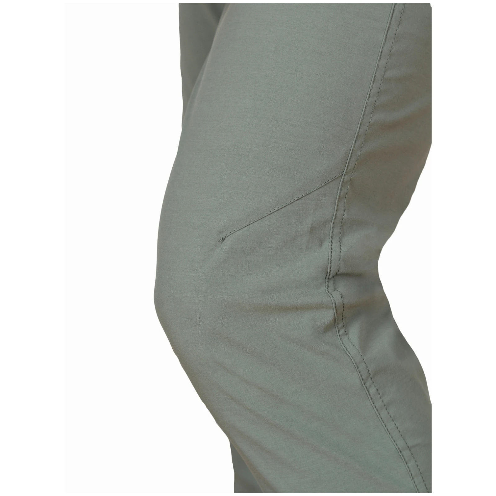 El pantalón tiene dos bolsillos clásicos en la parte superior para las manos, un bolsillo trasero y un bolsillo grande en el muslo derecho. Las rodillas tienen forma anatómica para una máxima libertad de movimientos y la parte inferior de las perneras está laminada, por lo que el pantalón puede acortarse fácilmente.