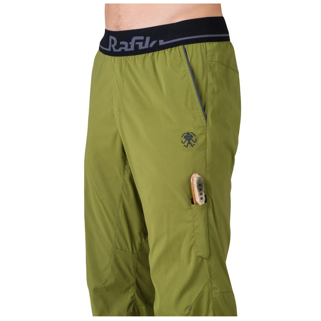 Los ligeros y aireados pantalones de escalada para hombre Drive, del famoso fabricante Rafiki, tienen una cinturilla elástica que no restringe tu movimiento y son ideales para escalar con cuerda, búlder en interiores o hacer yoga. . Por supuesto, hay un bolsillo y un elástico para el cepillo de dientes, una correa para la bolsa maglajz y un cordón en la cintura.