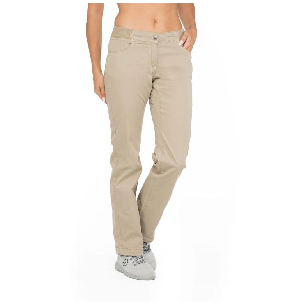 Jessy 2.0 – ¡probablemente los pantalones de mujer más resistentes de la colección Chillaz – también están disponibles como pantalones cortos de escalada! Gracias al material elástico, al corte holgado y al refuerzo en la entrepierna, ofrecen la máxima libertad de movimiento. La cintura elástica con cordón garantiza un buen ajuste. Como siempre, también son elegantes para el uso diario, pero estos pantalones cortos Chillaz se sienten mejor en el rocódromo.”