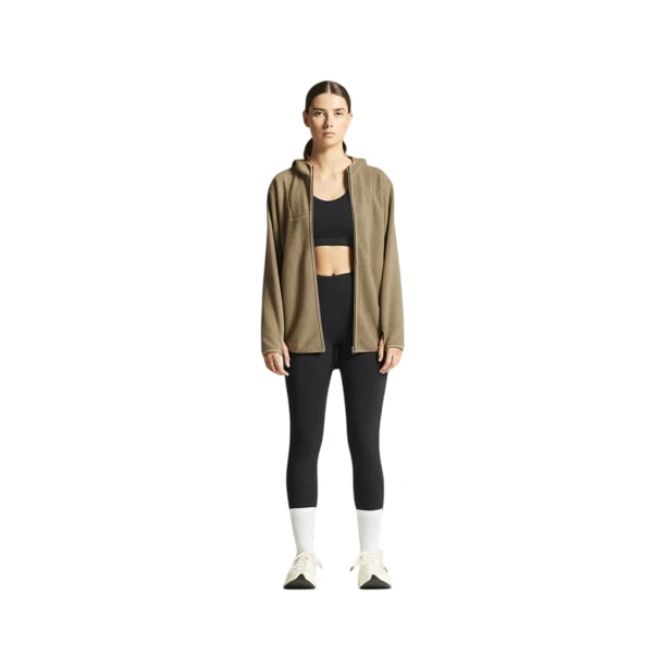 - material agradable al tacto (77 % poliéster reciclado, 23 % elastano) complementado con un forro térmico (82 % poliamida reciclada, 18 % elastano)