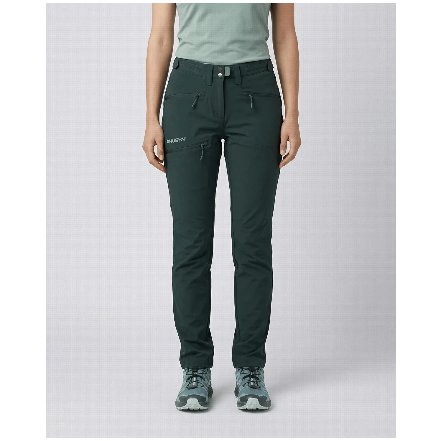 Los pantalones elásticos para mujer Kusty L de la marca Husky son una opción práctica para el senderismo y las actividades diarias. Gracias a su ingeniosa solución, en climas más cálidos puedes transformarlos fácilmente en pantalones cortos desabrochando la parte inferior, lo que aumenta su versatilidad en diferentes condiciones.