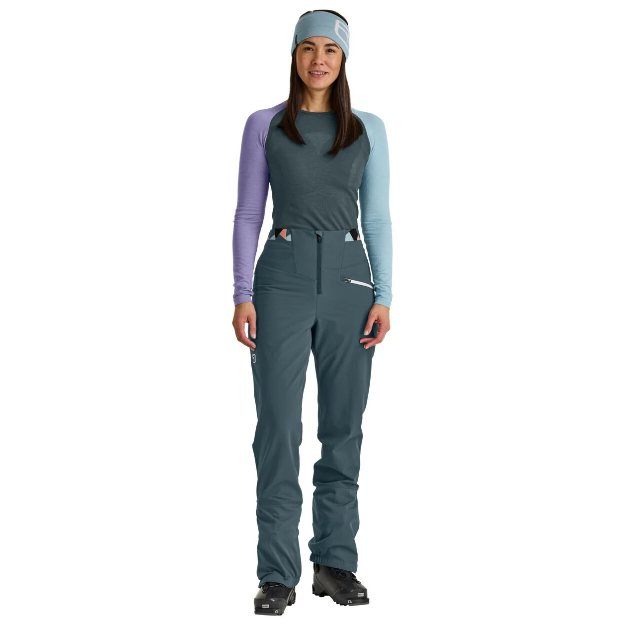 Los pantalones tienen un corte deportivo y detalles funcionales diseñados para el esquí de travesía: rodillas de forma anatómica, protección Schoeller® contra los cantos de los esquíes, puños ajustables en los tobillos, ajuste de cremallera en los bajos para adaptarse al calzado, cintura alta con panel elástico trasero y un práctico bolsillo en los laterales, y un borde de goma silencioso en el interior que evita que los pantalones se muevan durante el movimiento.