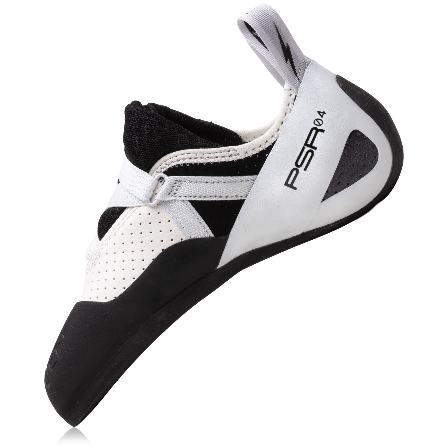 Las Defy también tienen una clasificación PSR 4 y una suela de 3,5 mm, lo que las hace lo suficientemente sensibles a la vez que conservan la fuerza suficiente para cantear en pequeñas presas. La parte superior está hecha de microgamuza perforada para aumentar la transpirabilidad y la suela TRAX SAS es el compuesto de goma más adherente que fabrica Evolv.