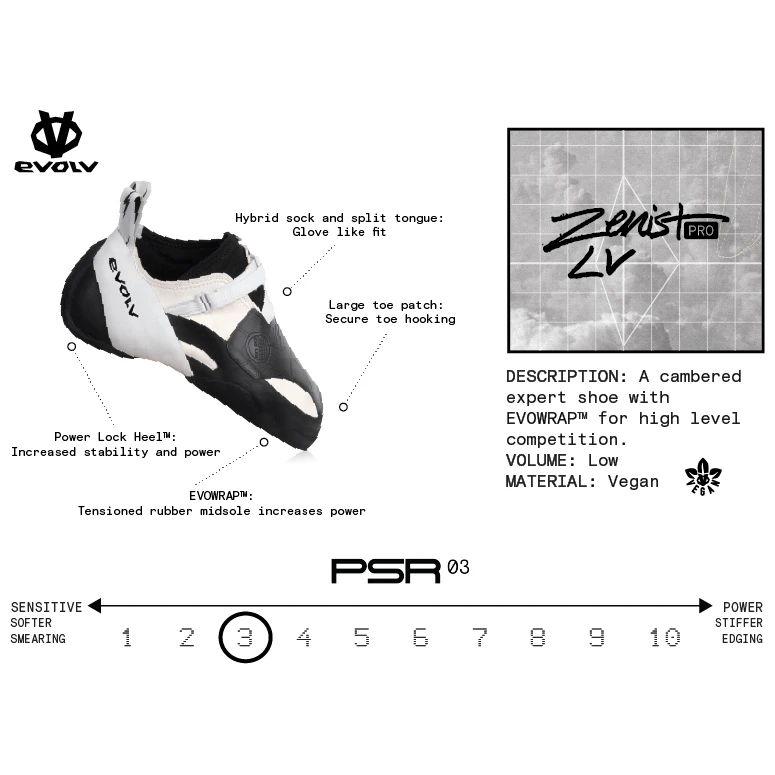 Los pies de gato Evolv Zenist Pro LV son una variante del legendario modelo Zenist Pro, especialmente diseñados para escaladores con pies más estrechos. Ofrecen el mismo rendimiento y sensibilidad que hacen del modelo original una zapatilla definitiva para el búlder de competición y la escalada en volúmenes, pero con un corte más estrecho para un ajuste preciso.