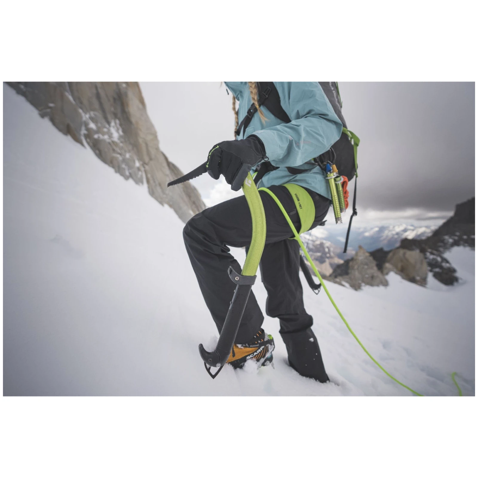 Su principal ventaja es su durabilidad. La empuñadura de forma hidráulica es ligera, pero mantiene la máxima resistencia y rigidez. Gracias a la curvatura y al ángulo de ataque, el piolet es más controlable en diversos tipos de nieve y hielo. La empuñadura y la cabeza están hechas de un material suave y adherente para un mejor agarre.