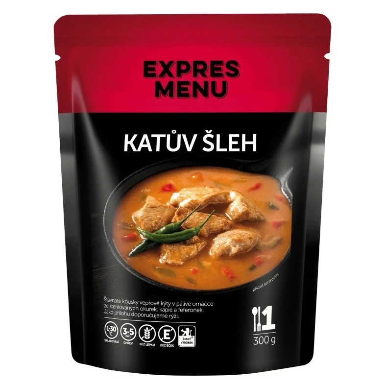 Las comidas esterilizadas listas para cocinar Expres menu de origen checo son ideales sobre todo para viajar, para las vacaciones en el mar y también en las montañas, en yate o en barco, para los que viven en casas de campo, para las familias con niños y para las personas mayores o también como comida rápida en casa (si, por ejemplo, llega una visita imprevista y quiere sorprenderla agradablemente con una cena caliente).