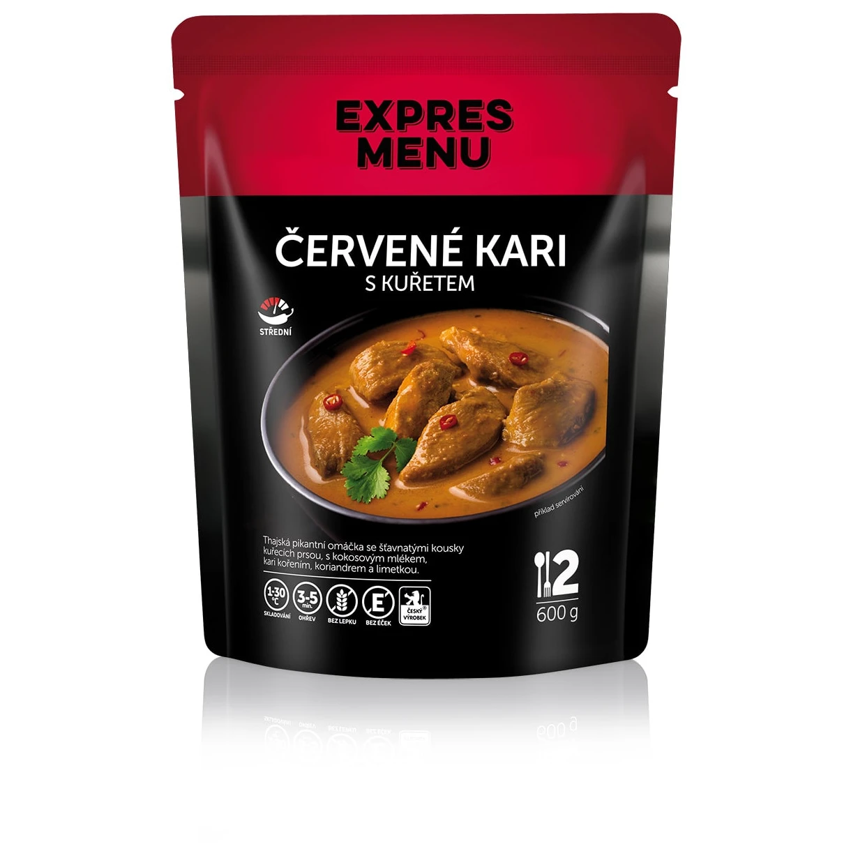 Los platos preparados esterilizados de Expres Menu, elaborados sin conservantes y sólo con los mejores ingredientes, se deleitarán con una salsa picante con jugosos trozos de pechuga de pollo, leche de coco, curry, cilantro y lima.