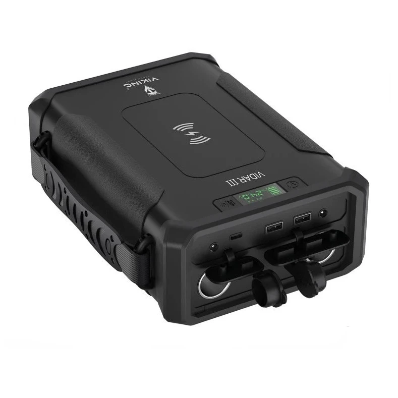 La powerbank para exteriores Viking VIDAR III de Viking Technology es una fuente de energía potente y duradera diseñada para condiciones exigentes en la naturaleza, en viajes y en terrenos difíciles. La robusta construcción con protección IP65 resiste al agua, al polvo y a los golpes, por lo que se puede utilizar de forma segura en campamentos, expediciones y trabajos fuera de la red.