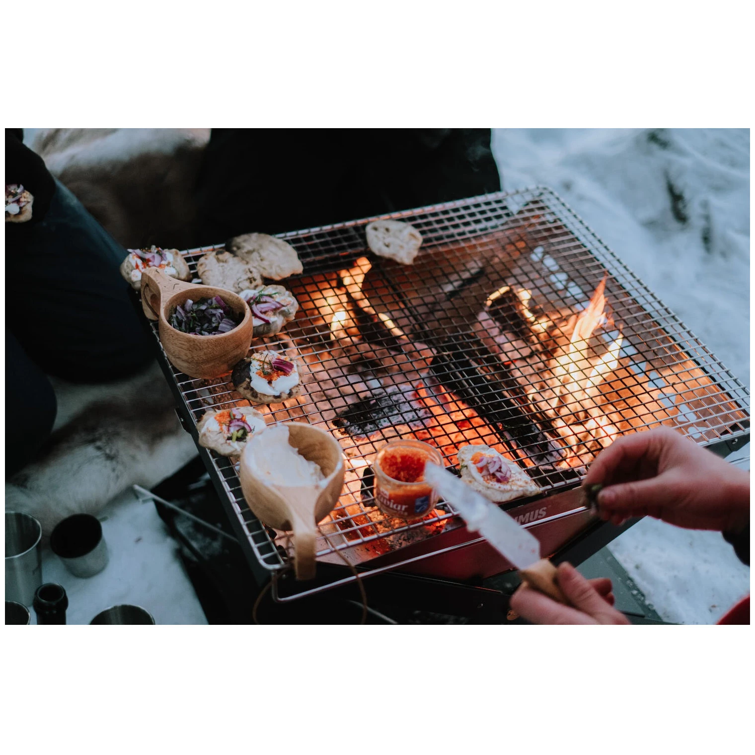 El brasero ligero y compacto Primus Kamoto Large es fácil de transportar, se despliega rápidamente y te permite asar a la parrilla sin dañar el terreno. Ideal para campistas y amantes de las cabañas.