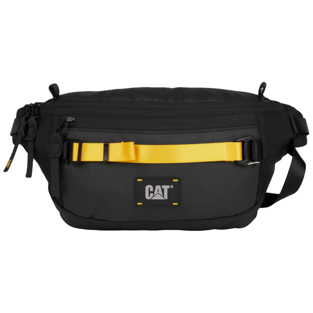 La práctica y resistente riñonera CAT Signature Utility X combina un diseño funcional con una fabricación robusta para el uso diario y en exteriores. Ofrece correas de compresión extraíbles con múltiples ojales para diversas opciones de sujeción, un compartimento principal con un bolsillo interior plano con cremallera y dos bolsillos adicionales con cremallera, delantero y trasero, para una fácil organización de los objetos pequeños. El material está reforzado con ripstop de diamante y complementado con detalles de Hypalon, incluyendo tiradores de cremallera y el logotipo.