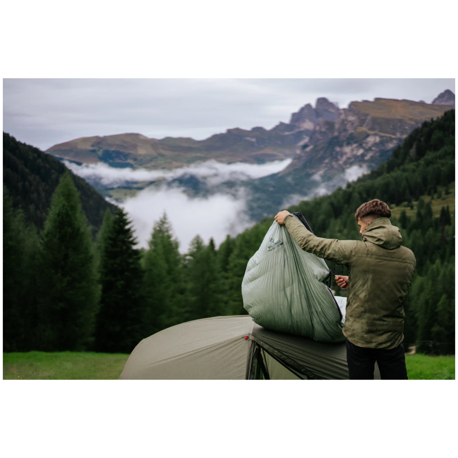 El saco de dormir Mysterious Traveller 500 está diseñado para todos aquellos que buscan un saco de dormir ligero y fiable para las noches más frías. Su construcción clásica con cámaras trapezoidales y el plumón de ganso de calidad con un poder de relleno de 700 FP garantizan un excelente confort térmico hasta finales de otoño. El material Pertex® Quantum o hmotnosti 35 g/m² es resistente y protege contra la humedad, lo que prolonga la vida útil del saco.