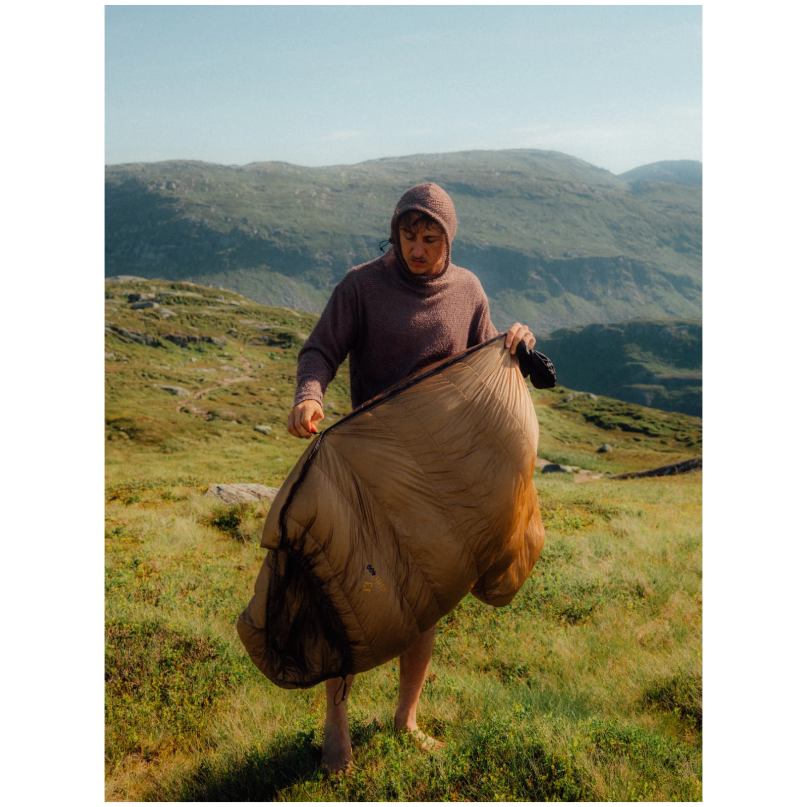 En la nueva versión del saco de dormir, se ha cambiado la capa superior. Toray Airtastic es uno de los tejidos más ligeros del mundo, que no filtra plumas hacia abajo y es lo suficientemente duradero como para utilizarse en sacos de dormir. Es perfectamente transpirable, pero al mismo tiempo cortaviento.